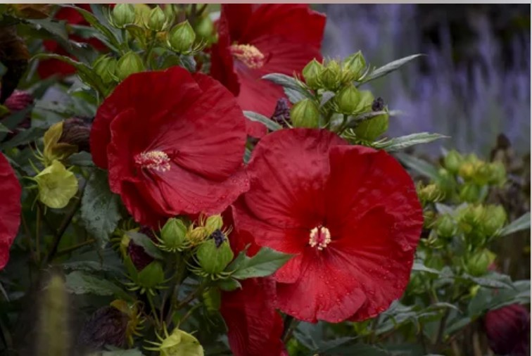 Бутоны Кренберри Краш имеют темный, почти черный оттенок, который выгодно контрастирует с уже распустившимися цветами. Для создания гармоничной композиции в саду, этот гибискус можно сочетать с растениями, имеющими схожий цвет, такими как пион Бакай Бель, астранция Венеция или персикария Домино. Если найти растения точно такого же оттенка сложно, можно рассмотреть варианты с красными или фиолетовыми цветами.