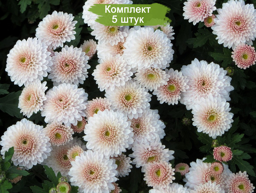 Саженцы хризантемы мультифлоры Яхо (Yahou) (Белая с розовой серединой ) - комплект 5 шт.