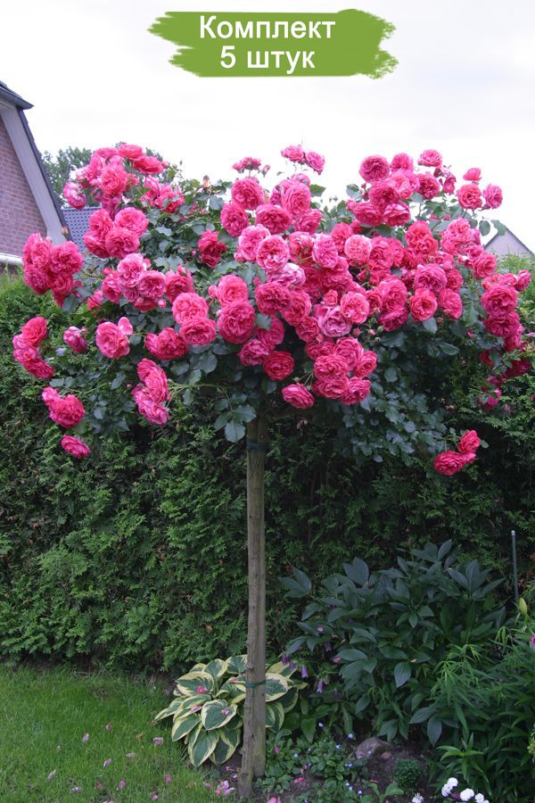 Штамбовая роза Розариум Ютерзен - это повторноцветущий сорт, который радует обильным и продолжительным цветением до самых первых заморозков. Цветки густомахровые, насыщенного розового оттенка, с нежным и легким ароматом. Этот сорт отличается высокой морозостойкостью и устойчивостью к заболеваниям.