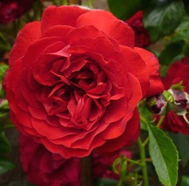 Цветок: Бархатистый, темно-красный с фиолетовым оттенком, густомахровый