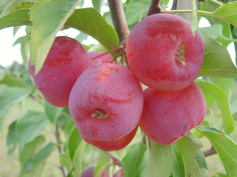 Плоды этого сорта небольшие, весом от 50 до 90 грамм, с красно-малиновым оттенком и восковым налетом. Они обладают кисло-сладким, освежающим вкусом с мускатными нотками, а их мякоть сочная и хрустящая. Срок созревания плодов средне-ранний, приходится на июль-август, что позволяет наслаждаться свежими и полезными яблоками в разгар лета.